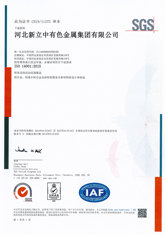 為了促進中國行業技術進步,立中合金集團成立了“標準化技術委員會”,主持和參與起草了21項國家及行業標準,如:GB/T 1173-2013《鑄造鋁合金》、GB/T 5678-2013《鑄造合金光譜分析取樣方法》、GB/T8733-2016《鑄造鋁合金錠》、JB/T7946.3-2016《鑄造鋁合金金相 鑄造鋁合金針孔》、JB/T7946.1-2016《鑄造鋁合金金相 鑄造鋁硅合金變質》和國家《鑄造鋁合金廢料的分類、回收與利用》標準等。同時還制定了數十項集團企業技術標準。